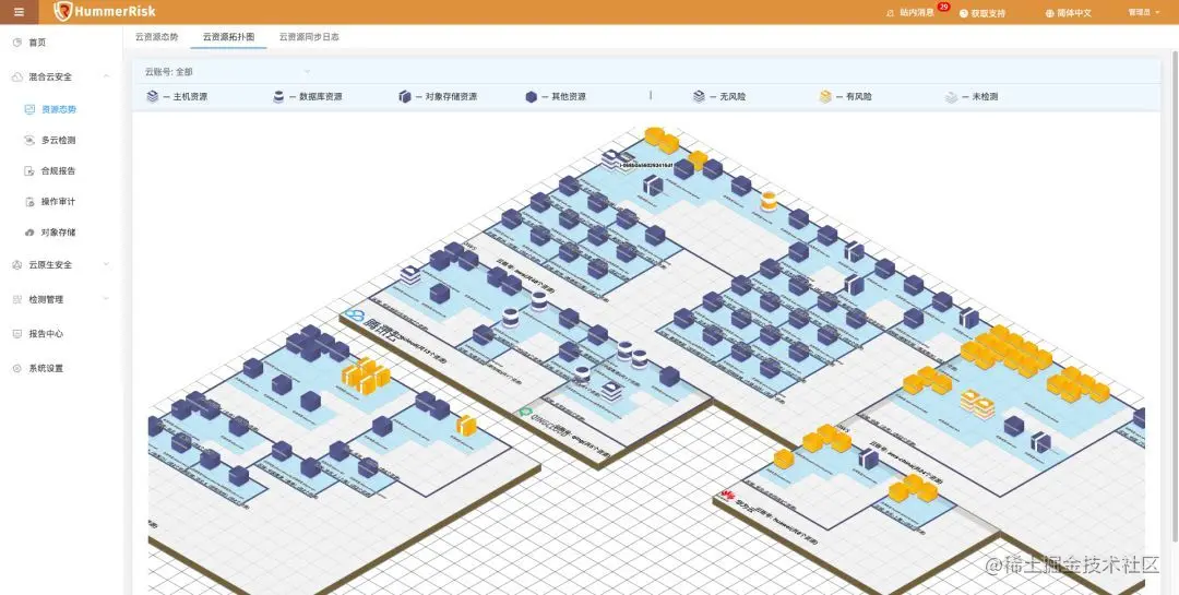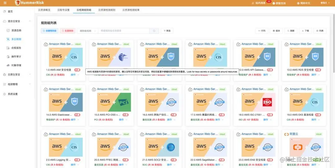 HummerRisk V1.2.0发布:经过一个月的时间,1.2.0和大家见面了,在这个版本中我们重做了云资源态势,用全新的2.5D方式来展现云上资源态势及资源关联关系,同时升级了多云合规检测引擎,现在X-PACK中的多云检测可以提升300%的执行速度,规则组也进行了重新的优化,更好的展现方式和更好的规划分布,另外Linux的主机检测我们增加新的整体检测结果。同时还有很多的优化和bug修复。感谢社区小伙伴发现并提交的问题。HummerRisk 保持高速的迭代,期待您的关注。docs.hummerrisk.com/about/downl…