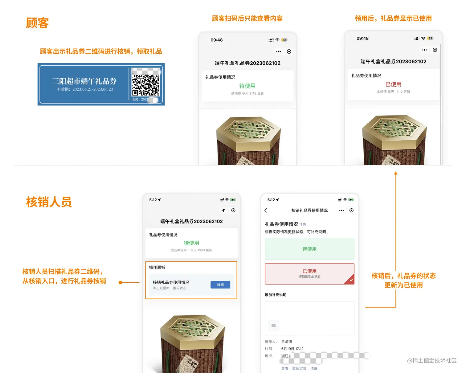 ● 如果未使用,可变更使用情况状态为已使用,确认核销后,顾客就可以领走礼品了。