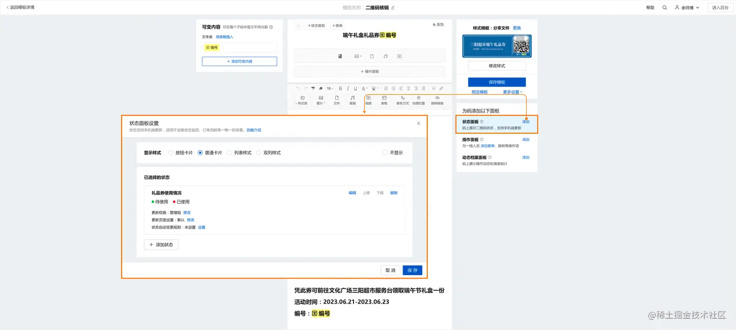 ● 可以指定只有内部人员才能变更状态进行核销,其他人无权限变更,防止重复领取。