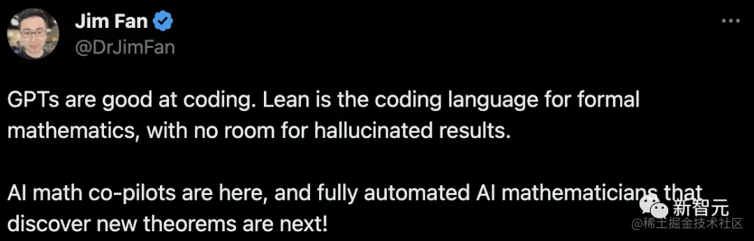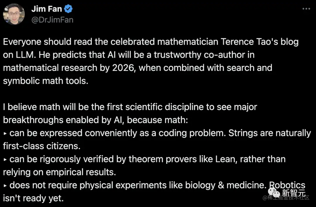 英伟达首席科学家Jim Fan激动转发称:见证人工智能实现重大突破的第一个学科,很可能就是数学!