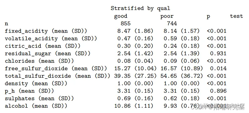 表 1. 优质和劣质葡萄酒的基本特征。
