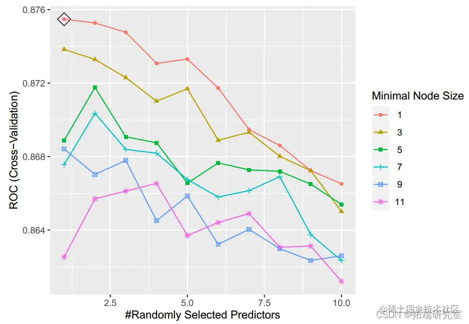 模型构建过程表明,在训练数据集中,酒精、硫酸盐、挥发性酸度、总二氧化硫和密度是葡萄酒质量分类的前 5 个重要预测因子。我们选择了随机森林模型,因为它的 AUC 值最大,分类错误率最低。该模型在测试数据集中也表现良好。因此,这种随机森林模型是葡萄酒品质分类的有效方法。