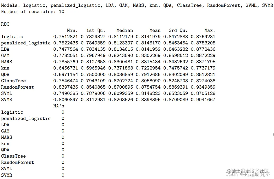 GAM 和 MARS 的优点是这两个模型都是非参数模型,并且能够处理高度复杂的非线性关系。具体来说,MARS 模型可以在模型中包含潜在的交互作用。然而,由于模型的复杂性、耗时的计算和高度的过拟合倾向是这两种模型的局限性。对于 KNN 模型,当 k 很大时,预测可能不准确。