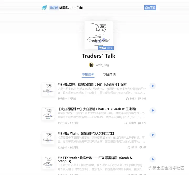 用ChatGPT编程下载单个小宇宙播客音频,在之前的文章《零代码编程:用ChatGPT打造小宇宙播客下载软件2.0》中已经讨论过了。如果想下载某个节目的全部音频,该怎么办呢?