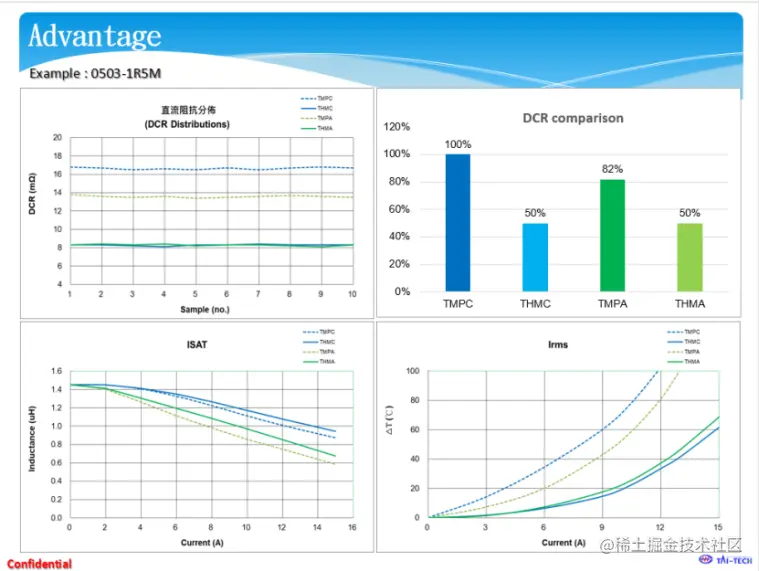 台庆科透过新材料的开发且搭配热压式的生产技术,大大增加本体密度,使得电感磁饱和程度更佳。同一尺寸下,找正品元器件,上唯样商城,热压式产品能提供更好的饱和电流,且降低直流阻抗让铜损降低,让热压式产品在温度表现上更甚以往。