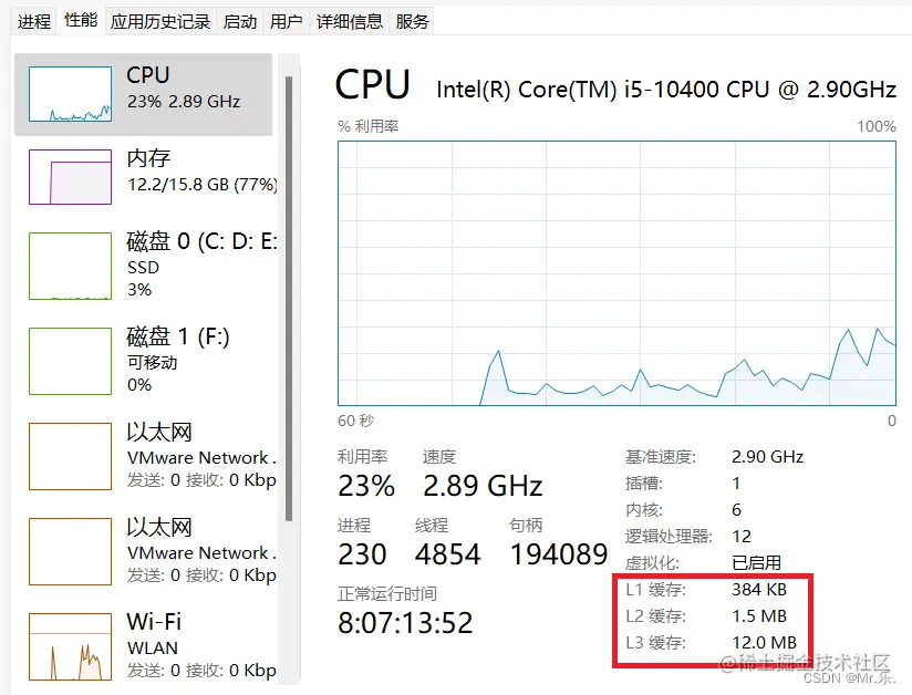 打开任务管理器,在性能中可查看CPU的多级缓存。