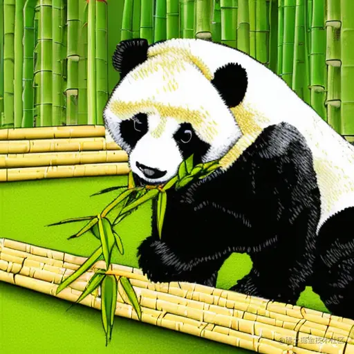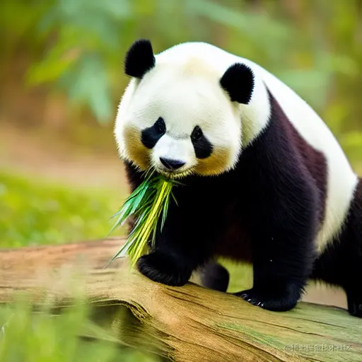 虽然我们的训练集中使用的全部是人物素材,但这种风格迁移不仅对人物有效,我们发现对于动物照片,同样能够实现画风风格的迁移,如下图所示,是一只大熊猫吃竹子的照片,及我们用 star1 进行风格迁移后的结果: