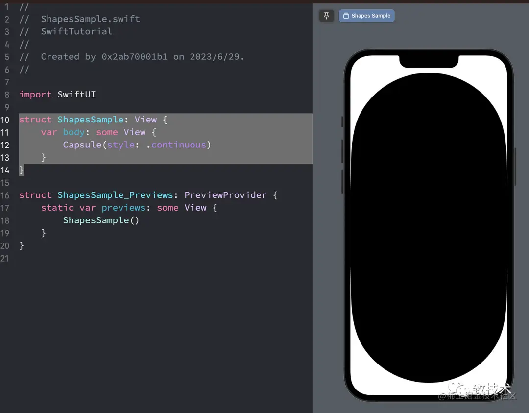 struct ShapesSample: View { var body: some View { Capsule(style: .continuous) }}