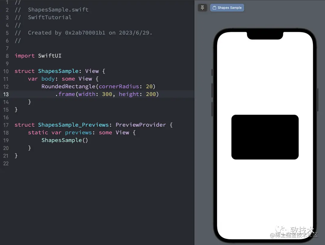 struct ShapesSample: View { var body: some View { RoundedRectangle(cornerRadius: 20) .frame(width: 300, height: 200) }}