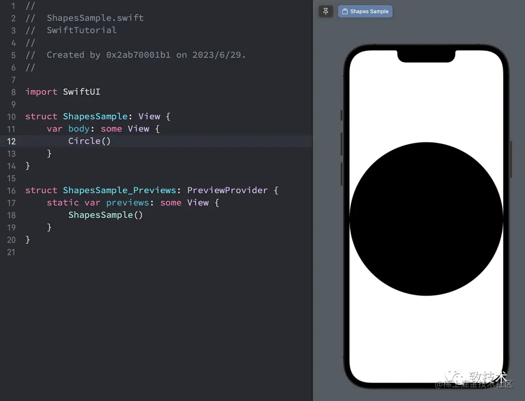 var body: some View { Circle() }