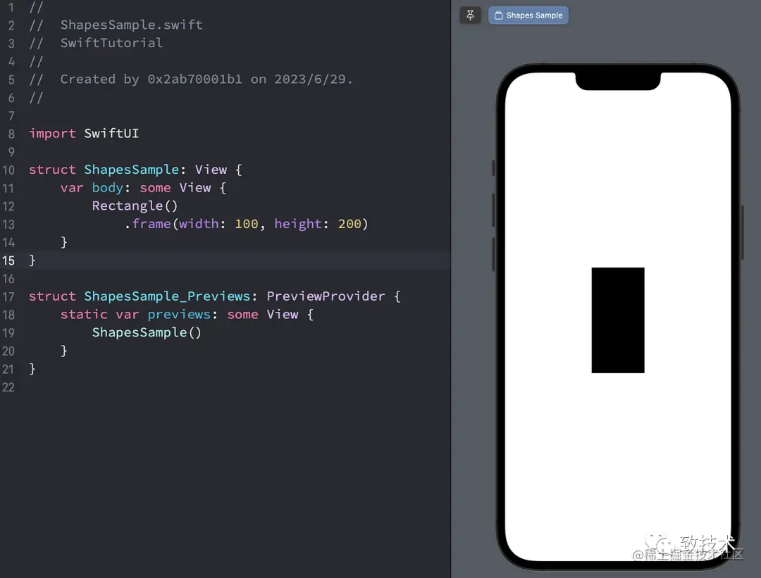 struct ShapesSample: View { var body: some View { Rectangle() .frame(width: 100, height: 200) }}