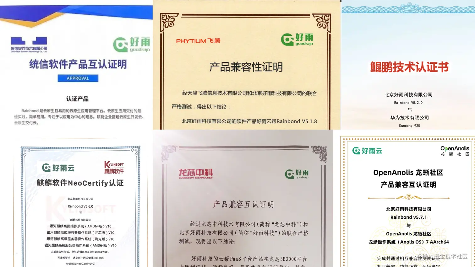 除 Arm 架构之外,Rainbond 信创版本也兼容主流国产化软硬件,全面支持信创场景,并且获得了国内各大 CPU 厂商、操作系统厂商的认证。一体化管理信创应用的开发、运维、交付全流程,极大降低国产化信创场景下的应用管理成本。