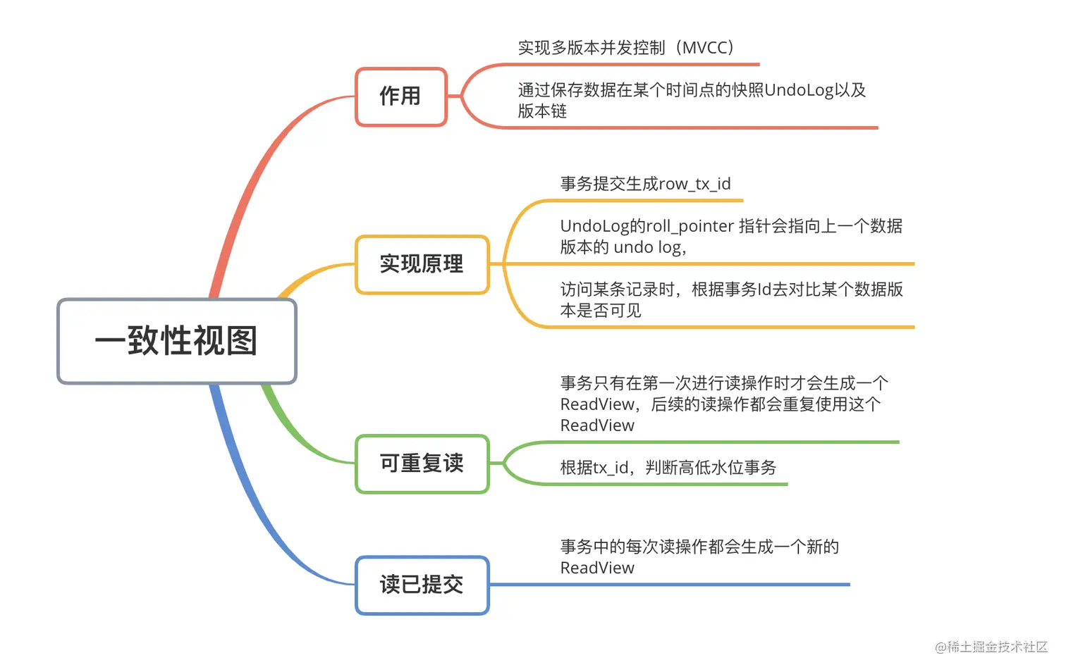 在MySQL中,READ COMMITTED和REPEATABLE READ隔离级别的区别就是它们生成ReadView的时机不同。