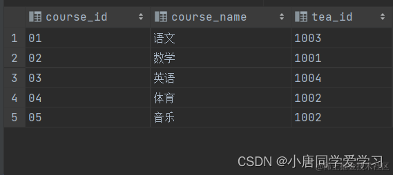 本次HSQL训练为初级训练,有四个表(course_info,score_info,student_info,teacher_info)