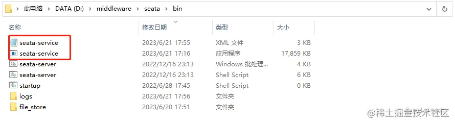 seata-service.exe, sample-minimal.xm 为seata-service.xml,将重命名后的文件放置在D:\middleware\seata\bin目录下 -