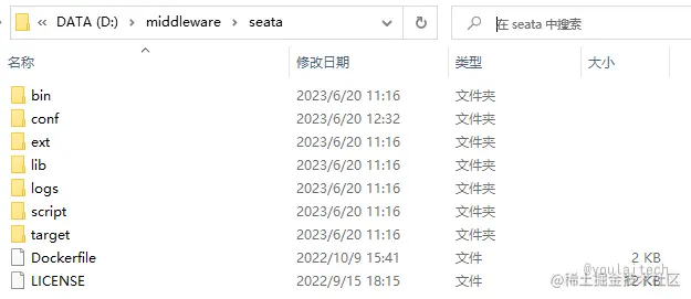 下载 seata-server-1.6.1.zip (⬇️ 更多版本下载), 将文件解压到本地目录 D:\middleware\seata。