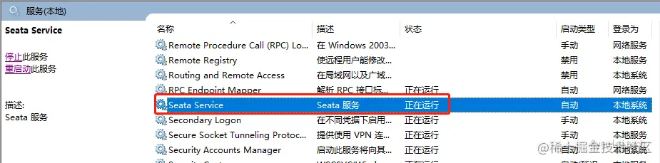 在 Windows 系统服务列表可以看到 Seata 服务(已验证可以开机自启动)