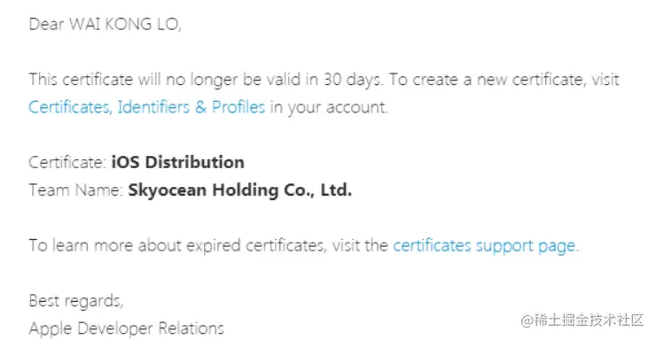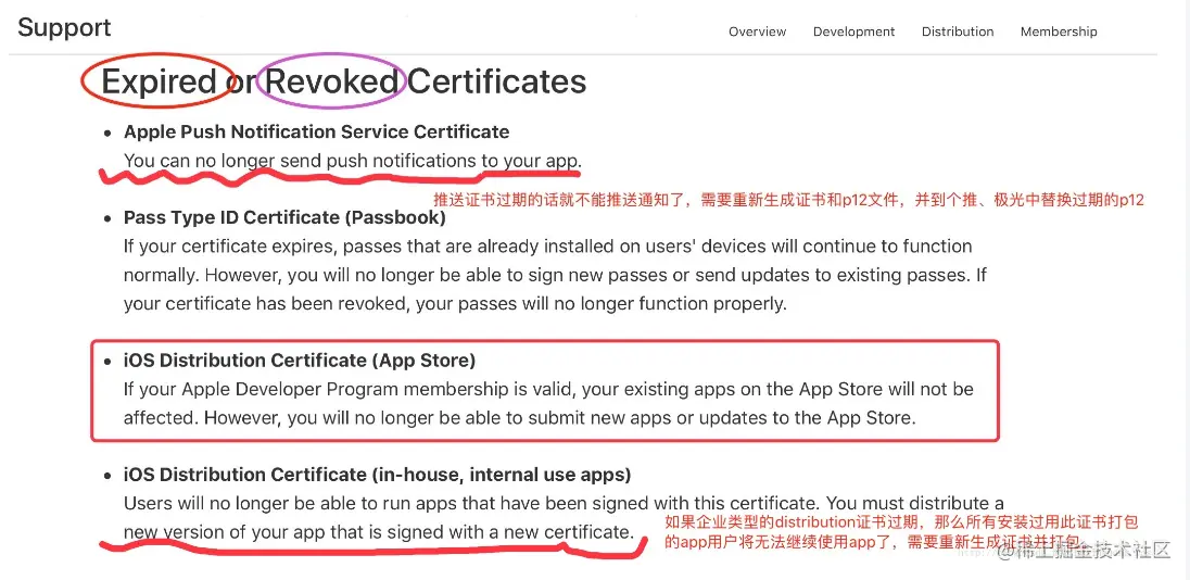 顺便贴一下Apple关于证书过期说明的截图和链接吧