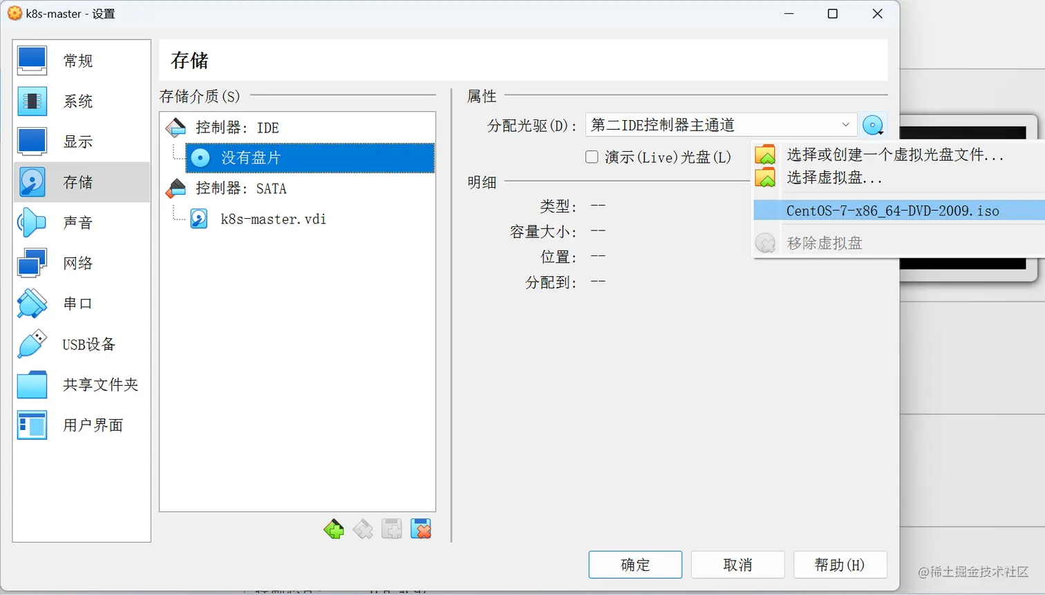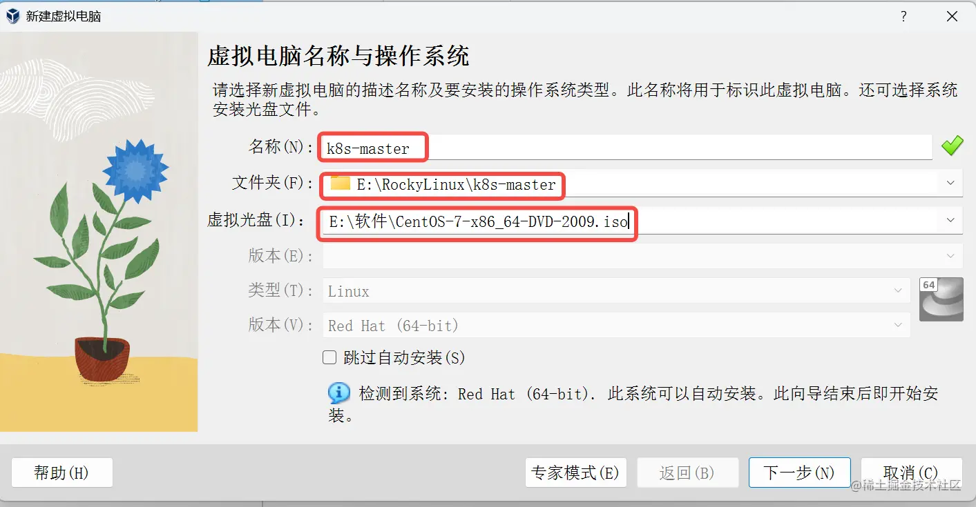- 命名、选择存放虚拟机的目录和现在CentOS操作系统的iso文件