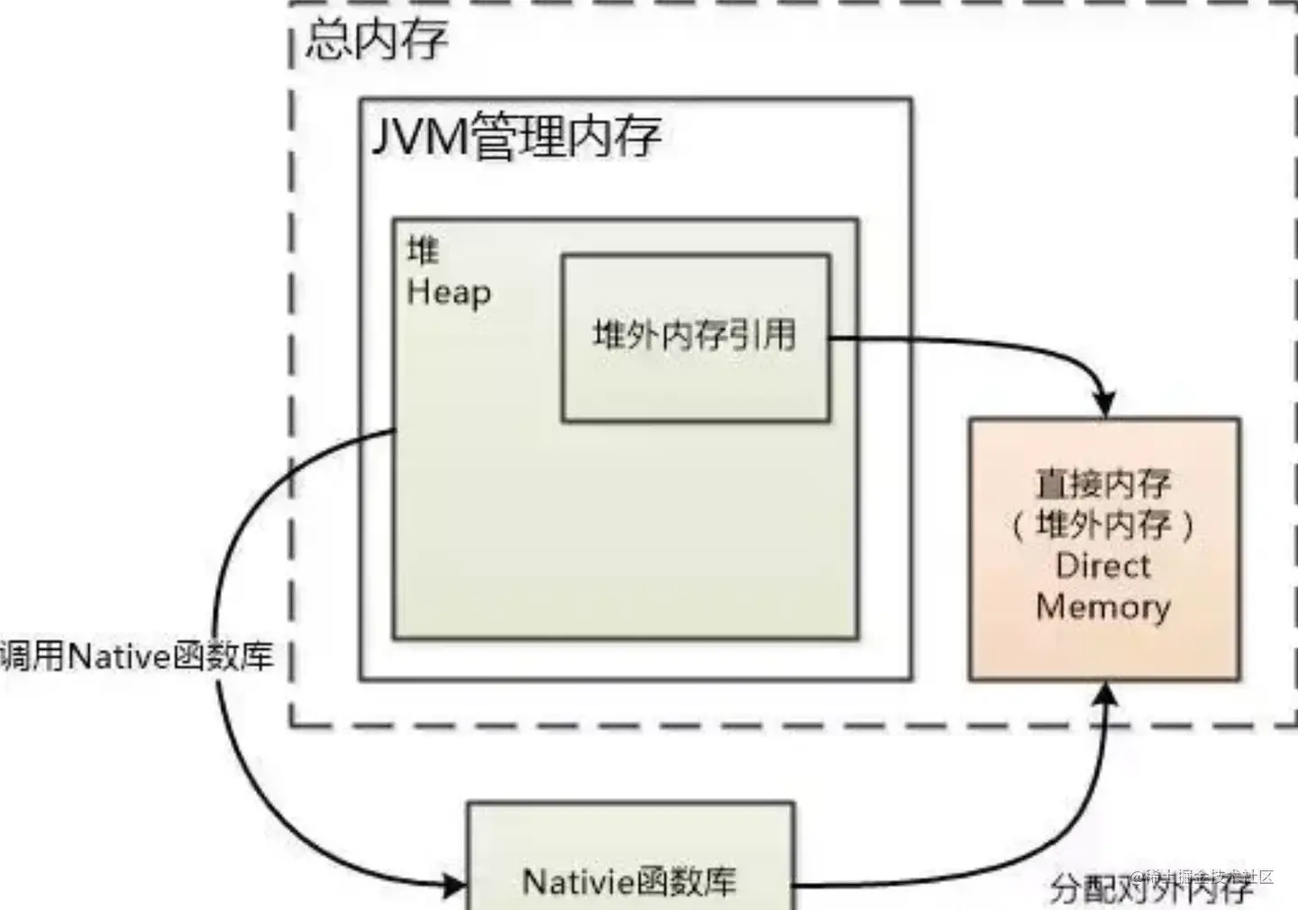 背景:堆内数据在flush到远程时,会先复制到Native 堆,然后再发送;直接移到堆外就更快了。 在JDK8,Native Memory包括元空间和Native 堆。