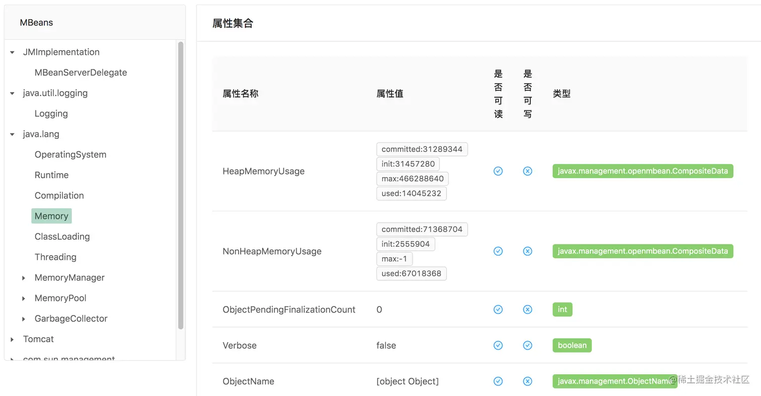 javax.management.openmbean.CompositeData 类型。还有的属性的数据类型是 javax.management.openmbean.TabularData。这些都要单独处理。