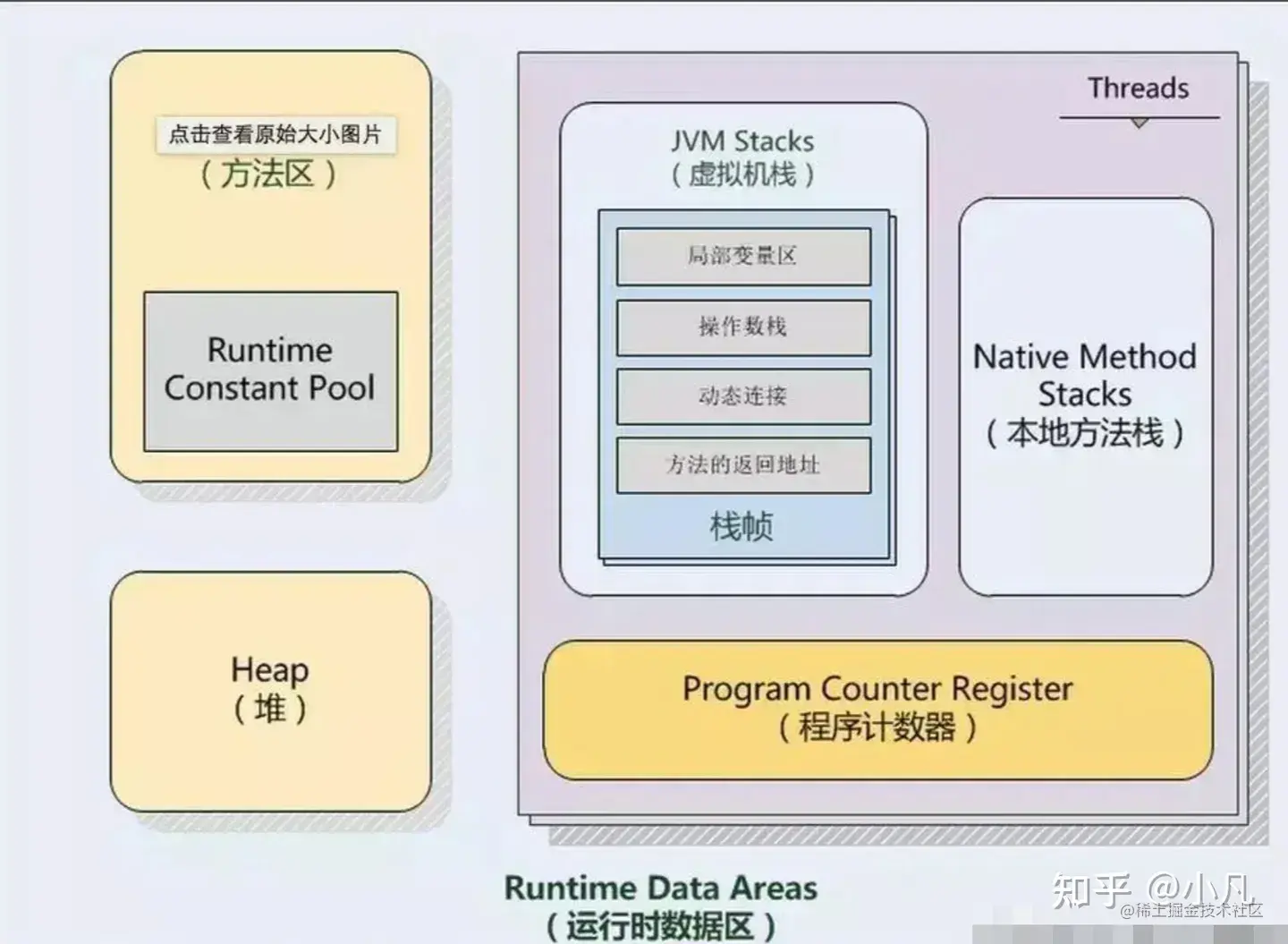 其中方法区和堆是所有线程共享的,虚拟机栈、本地方法栈和程序计数器则为线程私有的。