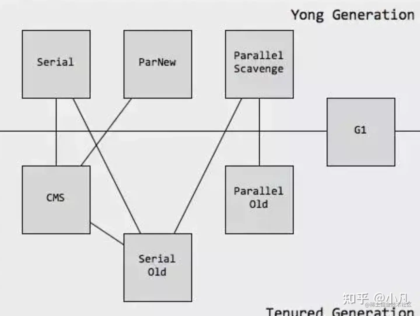 如果说垃圾回收算法是内存回收的方法论,那么垃圾收集器就是具体实现。jvm会结合针对不同的场景及用户的配置使用不同的收集器。