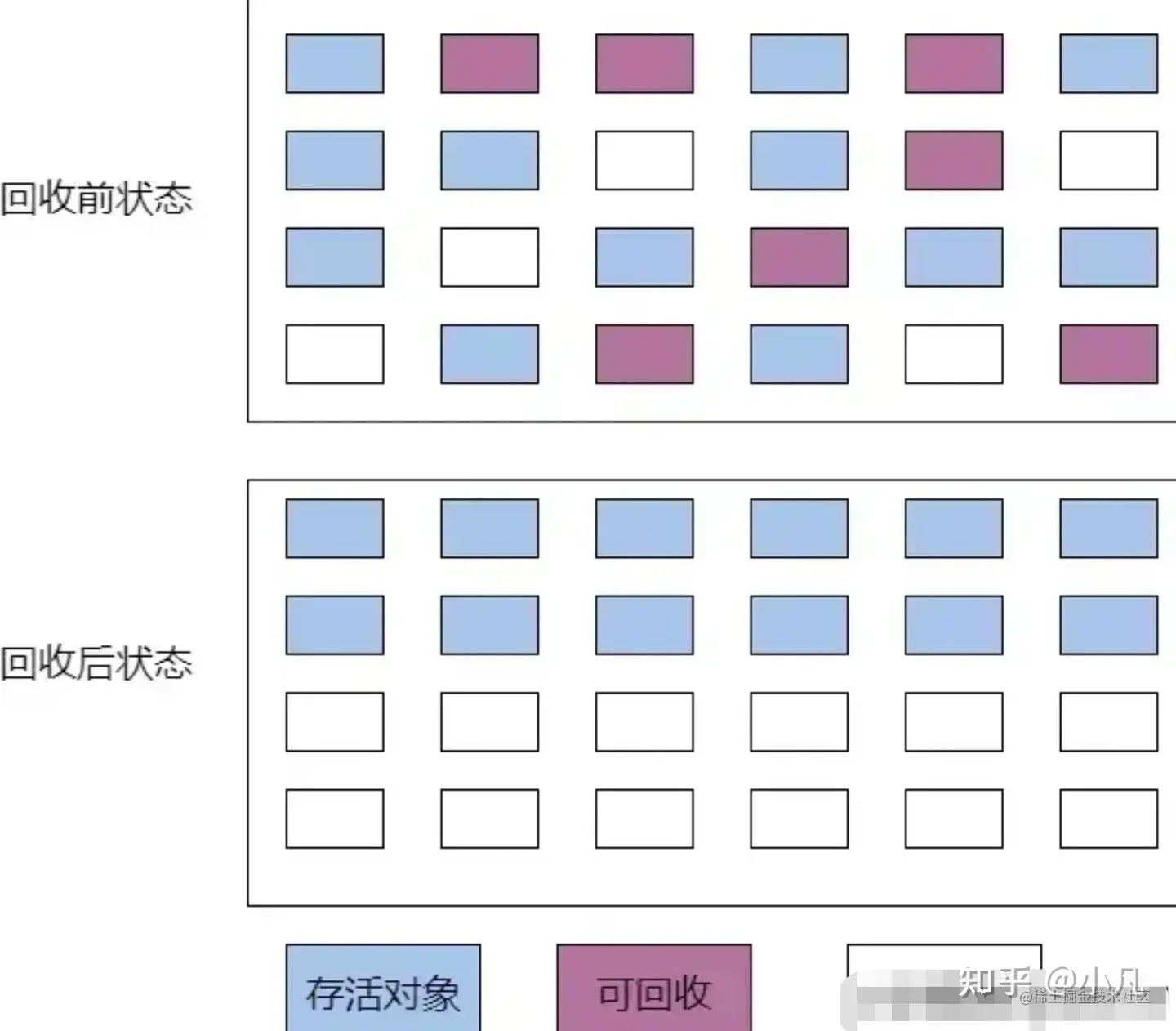经过这次GC后,Eden区和From区已经被清空。这个时候,“From”和“To”会交换他们的角色,也就是新的“To”就是上次GC前的“From”,新的“From”就是上次GC前的“To”。不管怎样,都会保证名为To的Survivor区域是空的。