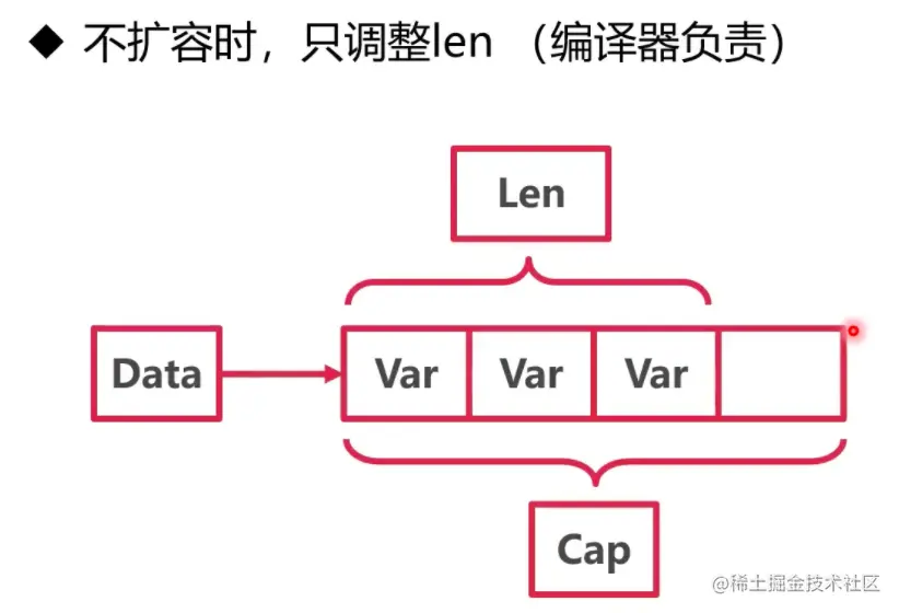 // append无论如何都是从slice的尾部开始追加数据; 如果有append操作,很可能会引发扩容,要特别注意