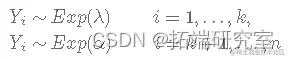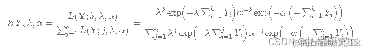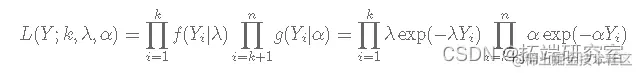 在本文中,我们将使用指数分布,假设它的参数 λ ,即事件之间的平均时间,在某个时间点 k 发生了变化,即: