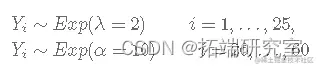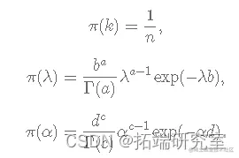 其中 k 未知且 k=1,2,...,n。让 Yi为公交车到达公交车站之间经过的时间(以分钟为单位)。假设变化点发生在第 k分钟,即: