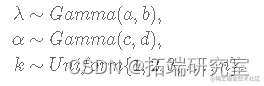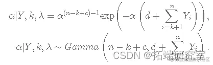 正如我之前提到的,Gibbs 采样器的实现需要从目标分布的边缘分布中采样,因此我们需要找到 λ、α 和 k 的完整条件分布。你怎么能这样做?简单来说,您必须从上面介绍的连接分布中选择仅依赖于感兴趣参数的项并忽略其余项。