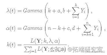 现在,对于算法的每次迭代,我们需要生成 λ(t)、α(t) 和 k(t),如下所示(记住如果 k+1>n 没有变化点):
