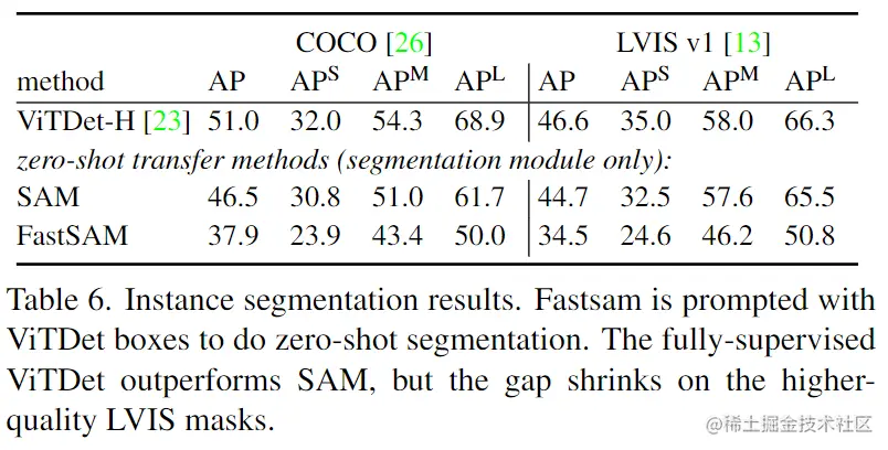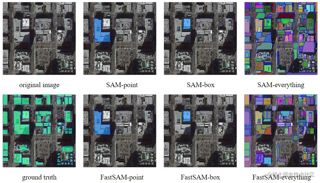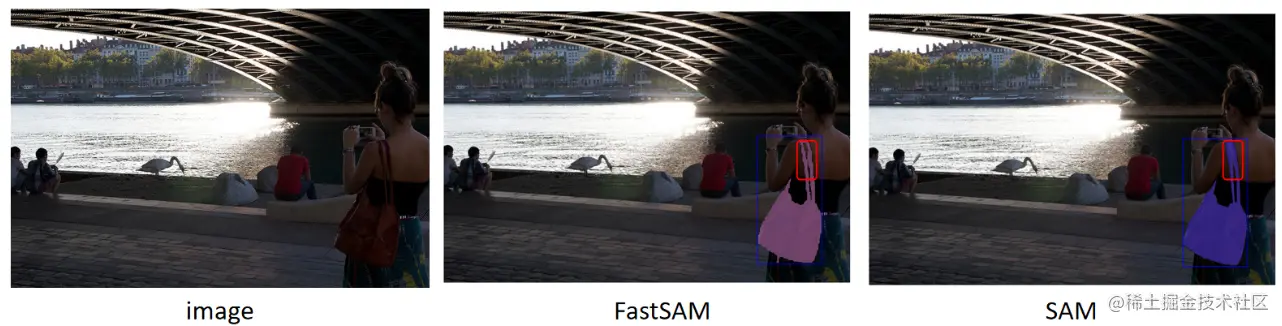 然而,正如实验中所展示的,FastSAM在生成框上具有明显的优势,但其掩码生成性能低于SAM,如上图11所示。FastSAM具有以下特点: