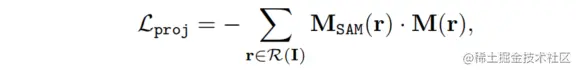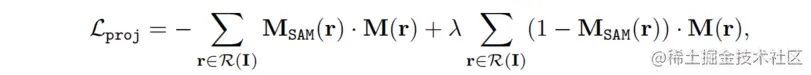 其中, 是通过掩码像素的射线投射, 继承自预训练的 NeRF 的密度值, 表示从体素网格 获取的位置 处的掩码置信度分数。将 SAM 生成的相应掩码表示为 。当 时,掩码逆渲染的目标是增加 相对于 的值。在实践中,可以使用梯度下降算法进行优化。为此,定义掩码投影损失为 和 的负乘积:
