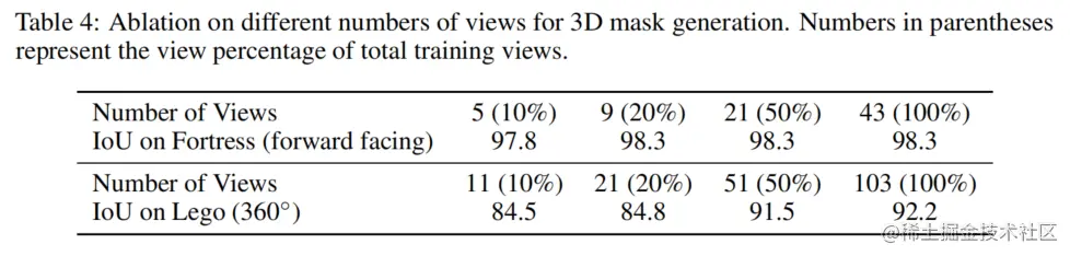 除了实验结果之外,论文希望从研究者对SAM和NeRF集成的初步研究中提供一些见解,即一个2D基础模型和一个3D表示模型。