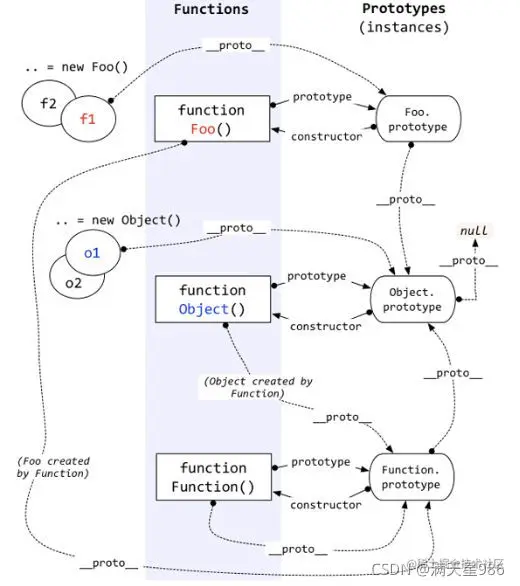 prototype为显示原型,_proto_为隐式原型;