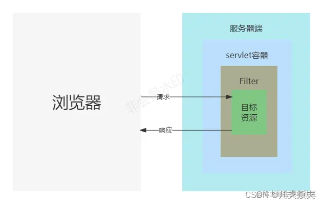 过滤器(Filter)是与servlet相关联的一个接口,主要适用于java web项目中,依赖于Servlet容器,是利用java的回调机制来实现过滤拦截来自浏览器端的http请求,可以拦截到访问URL对应的方法的请求和响应(ServletRequest request, ServletResponse response),但是不能对请求和响应信息中的值进行修改;一般用于设置字符编码、鉴权操作等;