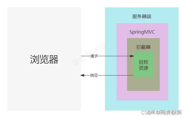 - 拦截器依赖于springMVC,可以在SpringMVC项目中使用,而SpringMVC的核心是DispatcherServlet,而DispatcherServlet又属于Servlet的子类,因此作用域和过滤器类似;