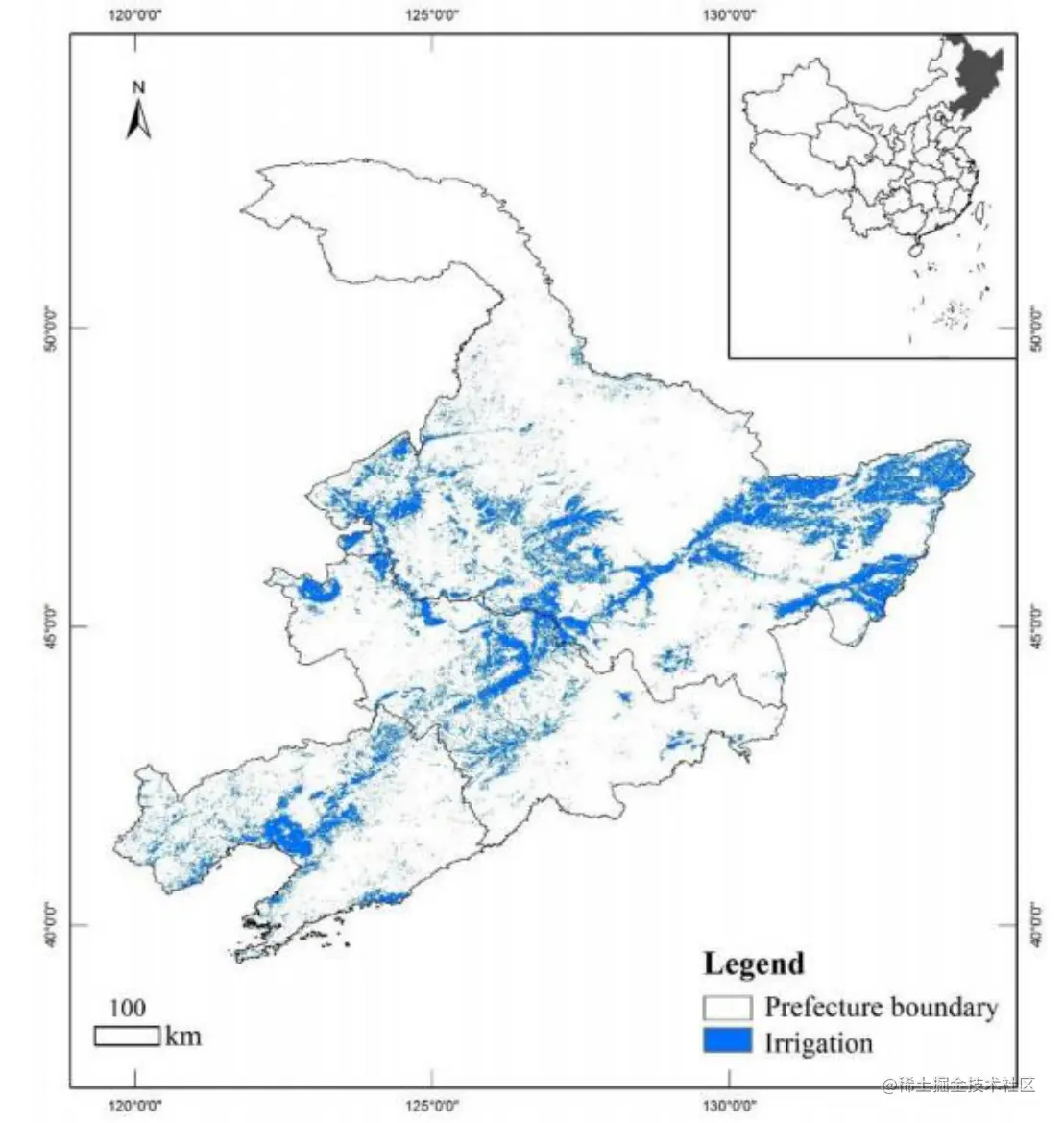 灌溉是最重要的农田管理措施之一,对决定作物产量起着重要作用。2016年东北地区灌溉田主要分布在三个冲积平原(松嫩 、辽河、三江平原)和三江(松花江、五苏里、黑龙江)的河谷。由于近10年灌溉农田向北扩张,黑龙江省占三个省总灌溉面积的近52.11%。