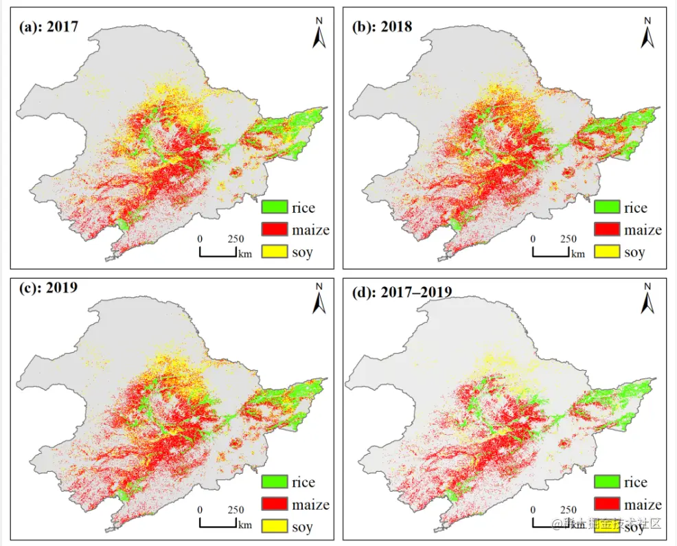 7、东北地区10m分辨率主要作物分布数据集(2017-2019年)