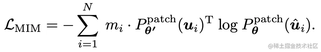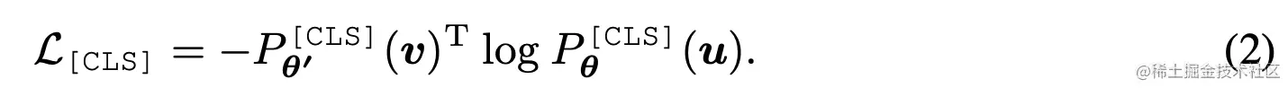 - 训练的目标有两部分,一部分是和DINO类似,student的和经过image path,mask之后输出和, teacher类似输出和, 平均&和&的交叉熵损失。第二部分和BEIT类似,student的和经过image path,mask之后输出被mask的patch的特征和,teacher类似,和student对应的patch输出为和, 期望是student得到的visual token和teacher没有被mask部分的visual token一致。两部分loss的公式如下:
