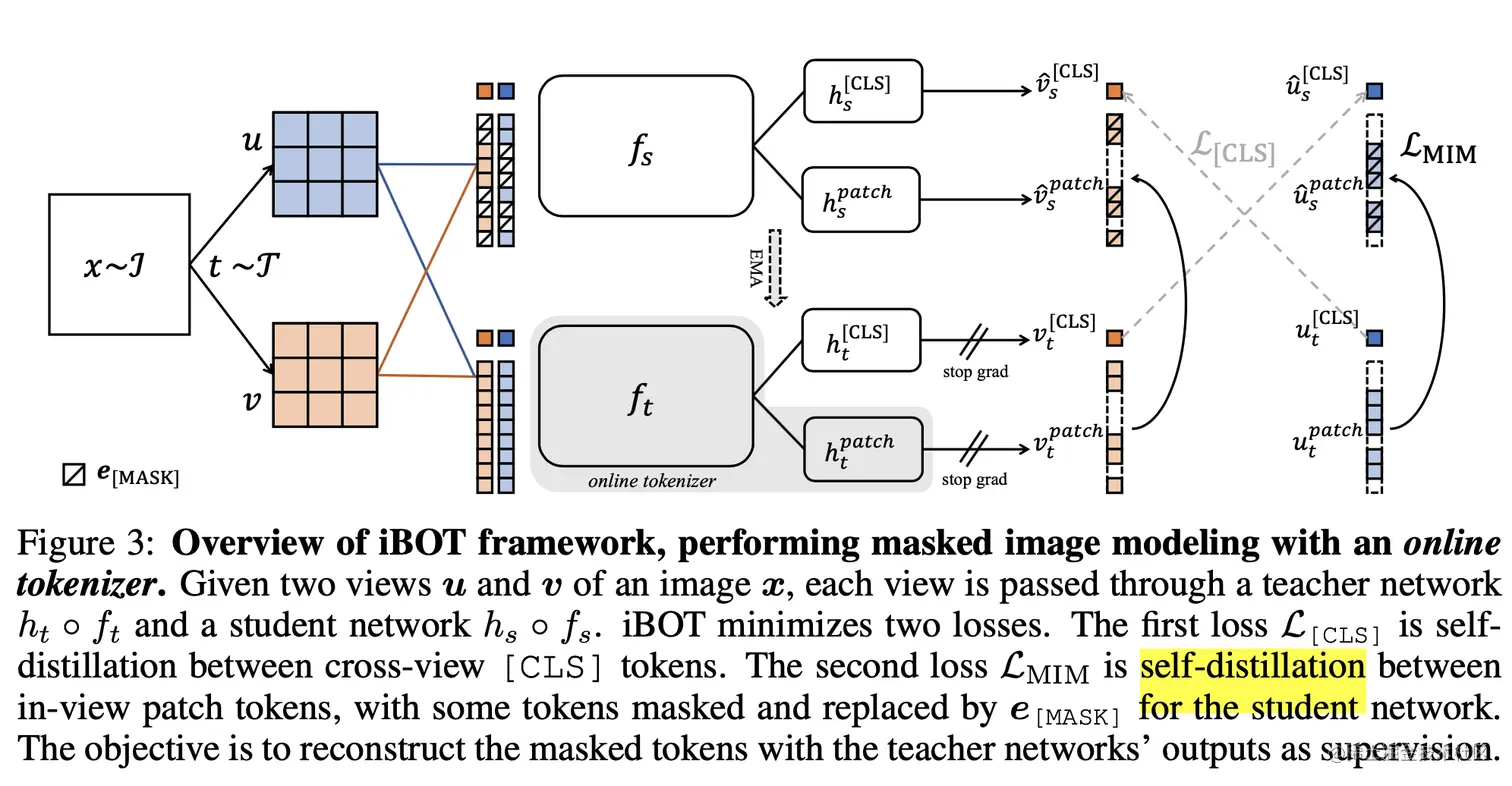介绍完了DINO和BEIT之后,终于要迎来主角iBOT了。这里引用iBOT论文中的原话总结iBOT:
