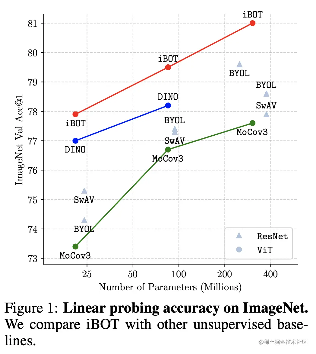 iBOT完整的名字是IMAGE BERT PRE-TRAINING WITH ONLINE TOKENIZER, 和BEIT: BERT Pre-Training of Image Transformers的名字很相似,iBOT确实受启发于BEIT,另外还使用到了对比学习之前的SOTA——DINO。可以看作是BEIT和DINO的结合,既然和另外两篇文章关系这么大,正好笔者之前也没有写过BEIT和DINO的文章,在介绍iBOT的时候会尽量把BEIT和DINO也给尽量详细的总结出来。