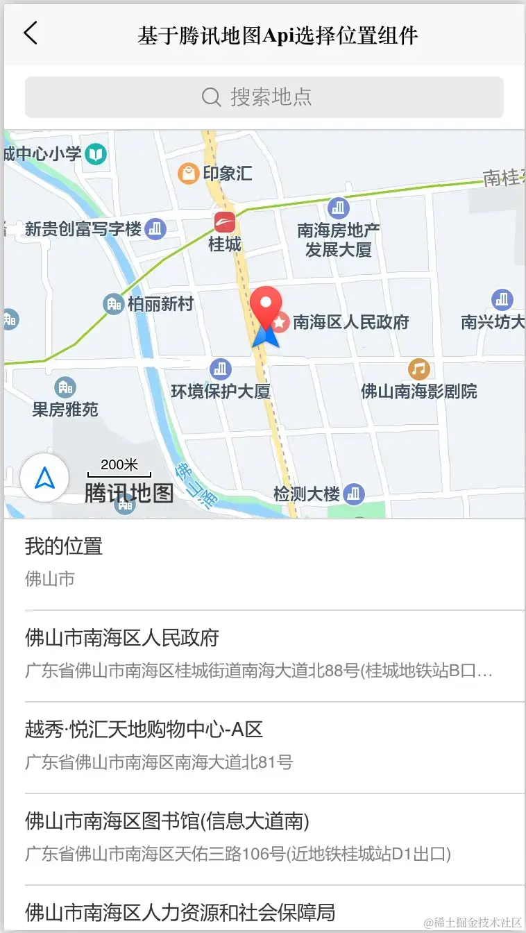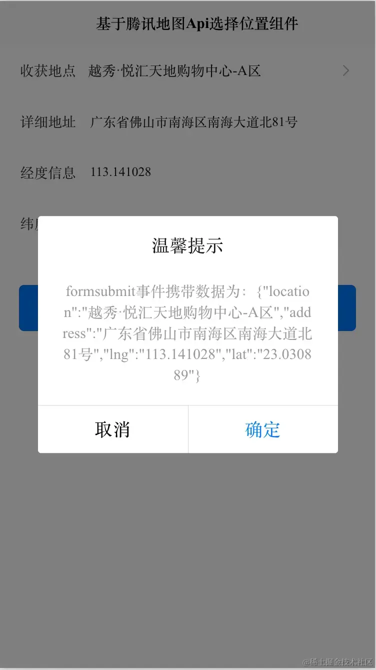 前端Vue基于腾讯地图Api实现的选择位置组件 返回地址名称详细地址经纬度信息,