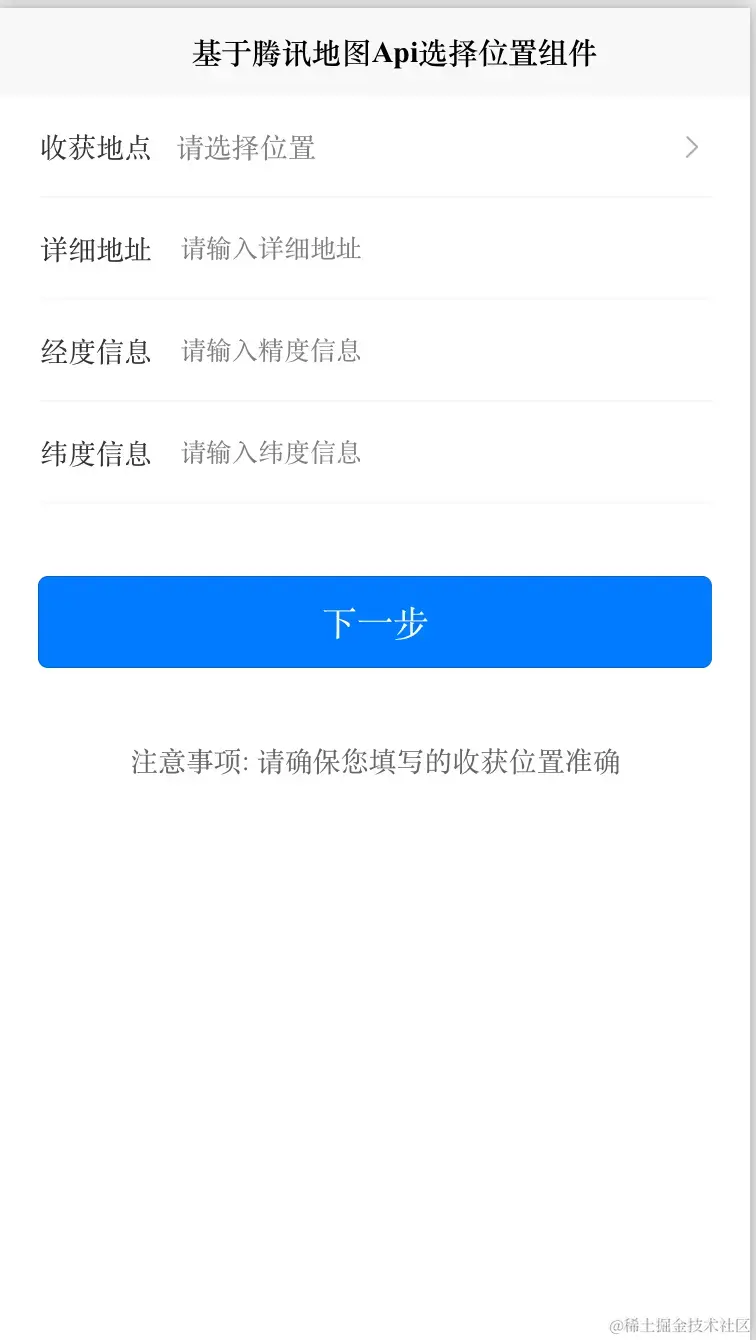 <view class="tipText"> 注意事项: 请确保您填写的收获位置准确 </view>