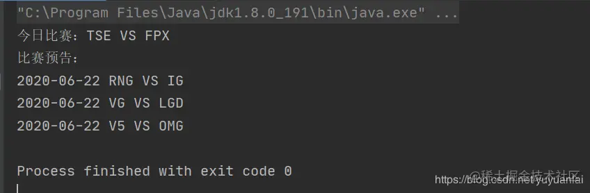 如上代码,有两个观察者,在发布信息的比赛信息后,观察者就可以获取自己关注的信息,然后进行自己的业务逻辑处理。代码输出如下