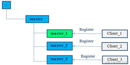 Zookeeper 如何实现 Leader Election,也就是选出一个 Master Server。和前面的一样每台 Server 创建一个 EPHEMERAL 目录节点,不同的是它还是一个 SEQUENTIAL 目录节点,所以它是个 EPHEMERAL_SEQUENTIAL 目录节点。之所以它是 EPHEMERAL_SEQUENTIAL 目录节点,是因为我们可以给每台 Server 编号,我们可以选择当前是最小编号的 Server 为 Master,假如这个最小编号的 Server 死去,由于是 EPHEMERAL 节点,死去的 Server 对应的节点也被删除,所以当前的节点列表中又出现一个最小编号的节点,我们就选择这个节点为当前 Master。这样就实现了动态选择 Master,避免了传统意义上单 Master 容易出现单点故障的问题。