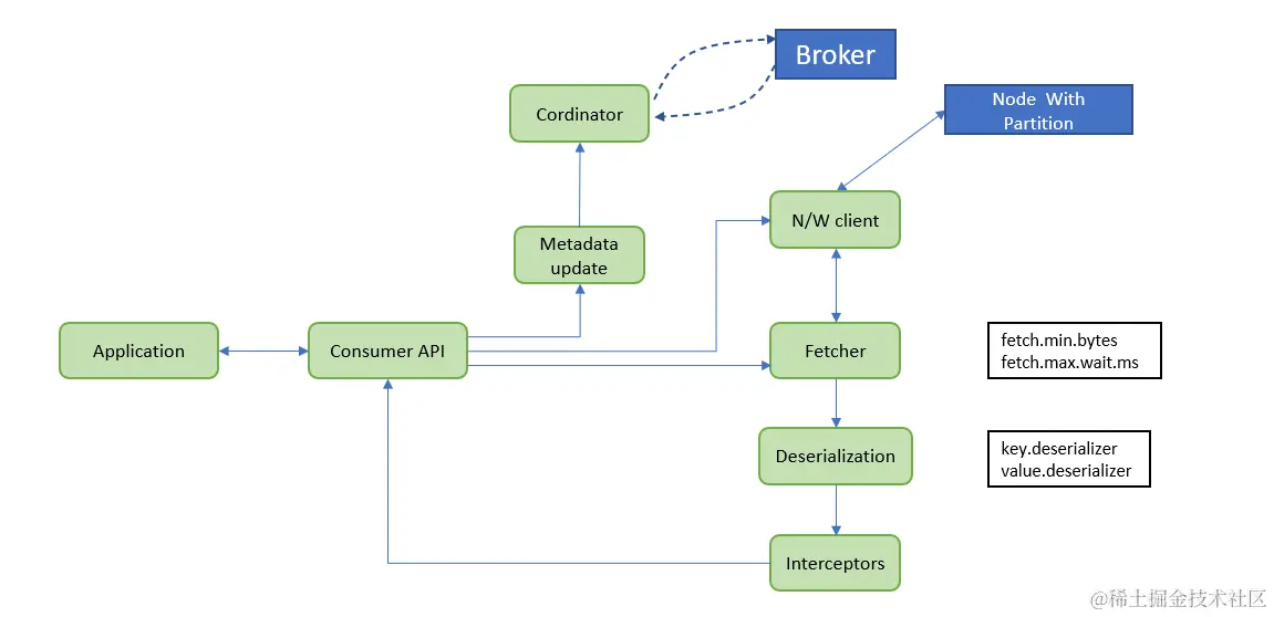 从上图中,我们可以看到 Kafka 消费者中的以下组件。