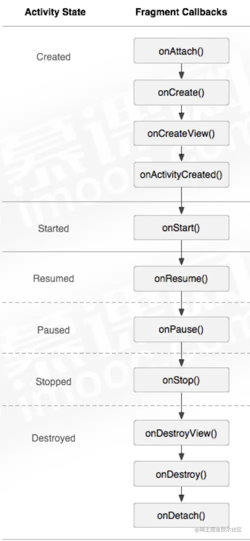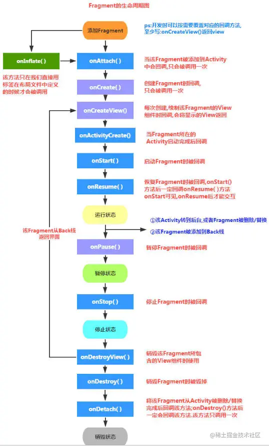 detach(Fragment fragment):会将view从UI中移除,和remove()不同,此时Fragment的状态依然由FragmentManager维护。 -